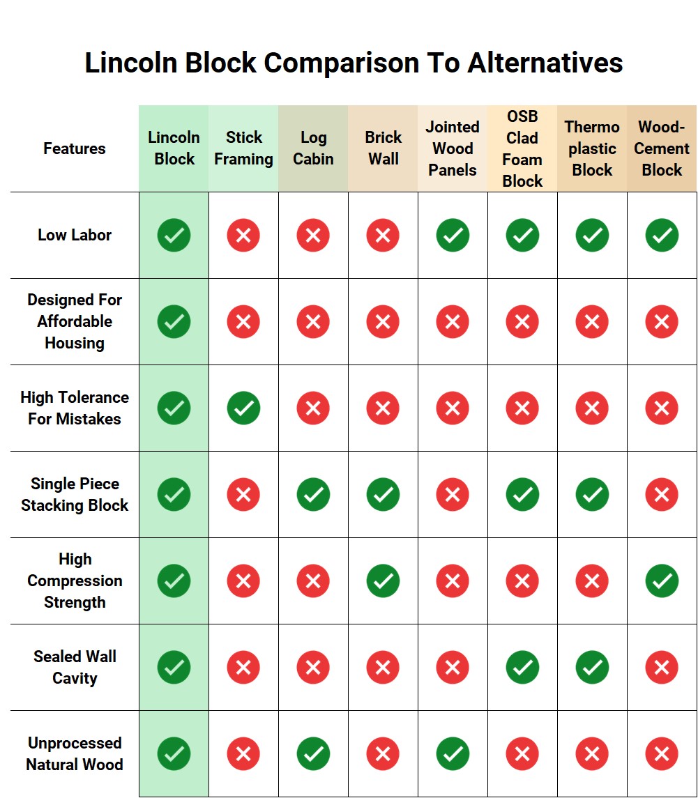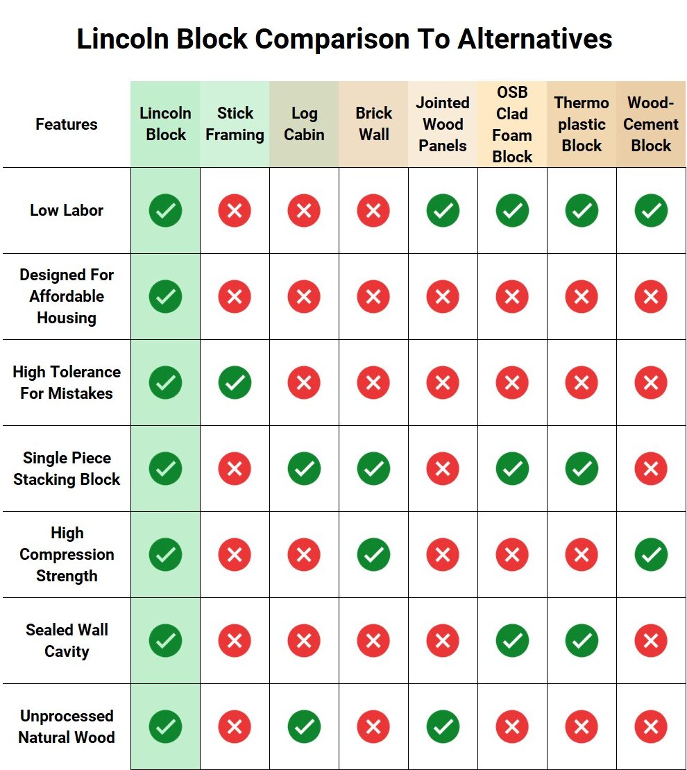 The latest trends in home construction are modular building blocks that enable you to build your house like playing with LEGOs. The oldest known methods of building use blocks, so a modern take on a proven method is natural. There are half a dozen new products on the market today that offer wood block homes, and Lincoln Block is a great choice that stacks up tall compared to them. Here are the advantages Lincoln Block makes available to you for your wood block house.